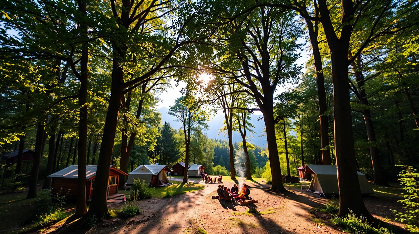 • Emplacements camping : Spacieux et ombragés, ils accueillent tentes, caravanes et camping-cars avec branchements électriques et accès aux sanitaires modernes